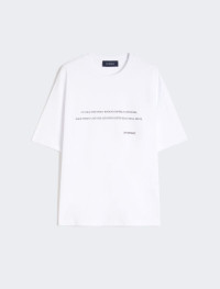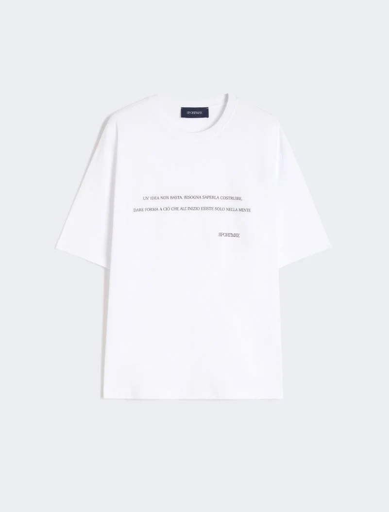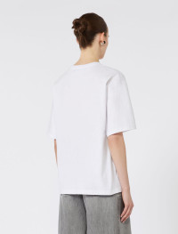 Slightly oversized T-shirt in pure cotton jersey with short sleeves and a crew neck. Customised with lettering print on the chest. - Pure cotton T-shirt - Rounded neckline - Short sleeve with stitching - Customised print on the chest - Regular fit Composition and Care 100% cotton. Hand wash cold (40°c max); do not bleach; do not tumble dry; flat drying in the shade; cool iron; do not dry clean; do not wet clean.; iron with a cloth between.; using neutral detergent.; don’t rub.; turn the articles inside out before washing.; to be ironed on reverse. Distributed by Max Mara S.r.l., registered office in Reggio Emilia (Italy), Via Giulia Maramotti 4, 42124