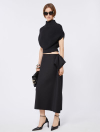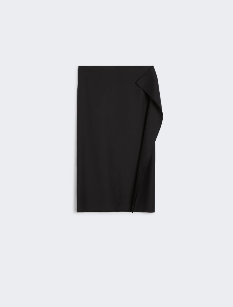 Clean-lined skirt with low waist and flounce motif on the left side. Made of stretch cotton, it outlines the silhouette and opens on the side via a slit. - Skirt with flounces in double technical stretch cotton fabric - Straight fit with low waist - Opened by a concealed zip on the back. - Left side seam with flounce motif and slit - Unlined. - Regular fit Composition and Care 48% cotton, 46% polyamide, 6% elastane. Hand wash cold (40°c max); do not bleach; do not tumble dry; line drying in the shade; cool iron; professionally dry clean perchloroethylene - mild process; do not wet clean. Distributed by Max Mara S.r.l., registered office in Reggio Emilia (Italy), Via Giulia Maramotti 4, 42124