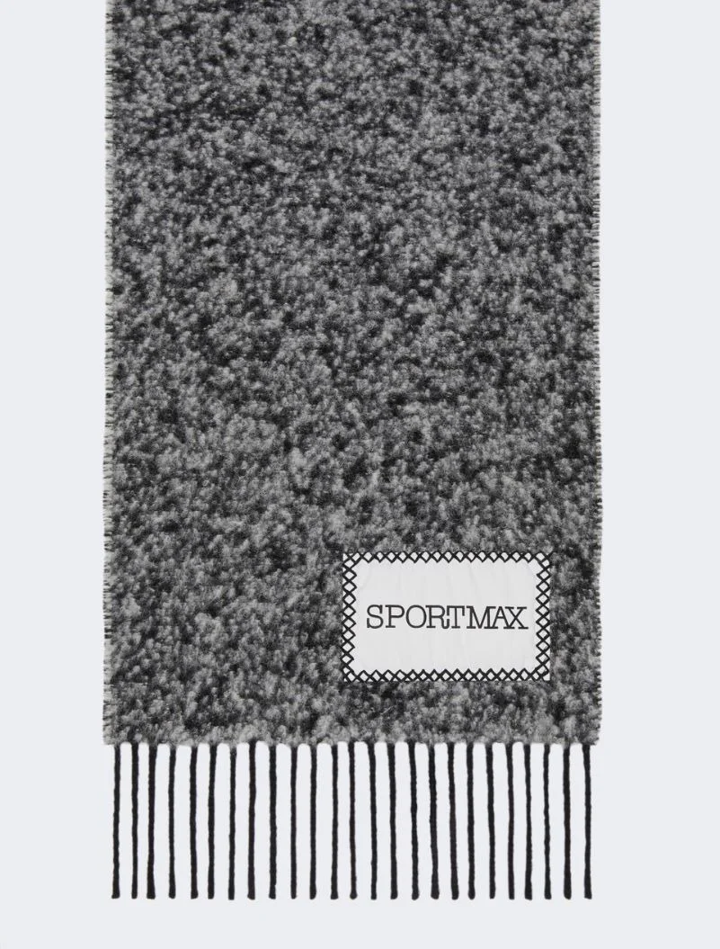 Jacquard alpaca and wool blend scarf, with maxi logo on one side for modular styling. With fringes and label on the front. - Boucle wool and alpaca blend scarf - Long braided fringes, 10 cm long - Maxi jacquard logo on the back - Maxi custom label on the front - Measurements: 30 x 245 cm Composition and Care 73% wool, 22% alpaca, 5% polyamide. Distributed by Max Mara S.r.l., registered office in Reggio Emilia (Italy), Via Giulia Maramotti 4, 42124