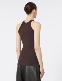 Iconic design tank top with a slightly halter collar. Crafted from stretch cotton and silk for a more refined look. - Stretch cotton and silk knit tank top - Fitted - Halter neck - Ribbed trim edges - Fit Composition and Care 67% cotton, 30% silk, 3% elastane. Hand wash cold (40°c max); do not bleach; do not tumble dry; drip line drying in the shade; cool iron; professionally dry clean perchloroethylene - mild process; do not wet clean.; iron with a cloth between.; using neutral detergent.; don’t rub.; turn the articles inside out before washing.; to be ironed on reverse. Distributed by Max Mara S.r.l., registered office in Reggio Emilia (Italy), Via Giulia Maramotti 4, 42124