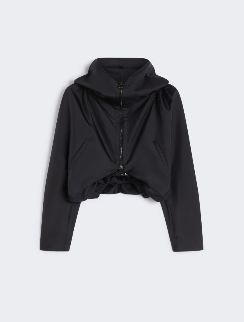 Short jacket in bonded habotai silk, with a cocoon line and kimono cut. The internal elasticated waistband at the hem of the garment creates a padded effect. - Kimono jacket in bonded habotai silk - Soft fit with kimono line - Raised collar with hood and drawstring - Metal zip closure and elastic waistband at the hem - Side welt pockets - Wide fit Composition and Care Outer fabric 100% silk; inner fabric 100% polyester. Do not wash; do not bleach; do not tumble dry; cool iron; professionally dry clean perchloroethylene - mild process; do not wet clean.; put this item into a string bag before washing it.; wash the garment while it is fastened. Distributed by Max Mara S.r.l., registered office in Reggio Emilia (Italy), Via Giulia Maramotti 4, 42124