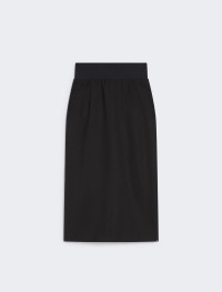 Feminine longuette skirt featuring a back slit and a contrasting elasticated band to accentuate the silhouette. - Stretch wool canvas skirt - Feminine silhouette with a tapered hem - Contrasting high elastic waistband - Centre back slit - Lined - Regular fit Composition and Care Outer fabric 100% virgin wool; inner fabric 100% polyester; lining 70% acetate, 30% polyester; - exclusive of decoration. Do not wash; do not bleach; do not tumble dry; cool iron; professionally dry clean perchloroethylene - mild process; do not wet clean. Distributed by Max Mara S.r.l., registered office in Reggio Emilia (Italy), Via Giulia Maramotti 4, 42124