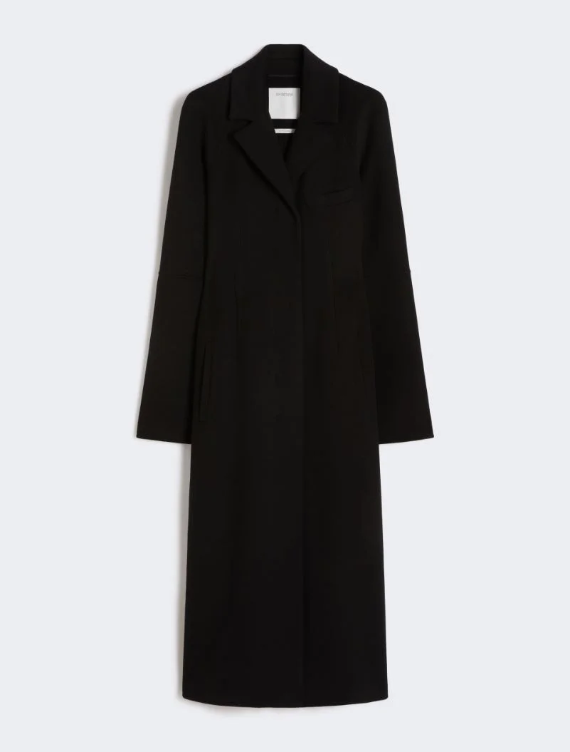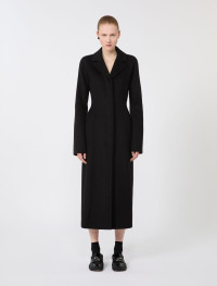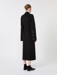 Long and feminine, the pure wool double cloth coat features an hourglass-shaped silhouette. Flared sleeves and concealed buttons complete a piece with sartorial flair. - Coat in pure wool double drap - Feminine cut with hourglass line - Notched lapel and asymmetric front fastening with visible buttons - Raglan sleeves with high cuffs and flared line - Side welt pockets - Slim fit Composition and Care Fabric 100% virgin wool; - except joining thread. Do not wash; do not bleach; do not tumble dry; cool iron; professionally dry clean perchloroethylene - mild process; do not wet clean.; wash the garment while it is fastened.; do not iron the buttons.; protect buttons before washing. Distributed by Max Mara S.r.l., registered office in Reggio Emilia (Italy), Via Giulia Maramotti 4, 42124