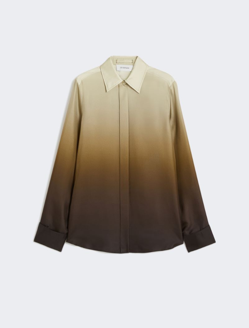 Pure silk shirt decorated with an ombre print. The feminine cut and clean construction make it a garment with a timeless design. - Pure ombre silk twill shirt. - Shirt collar - Covered button placket, double button cuff - Visible stitching on construction seams. - Regular fit Composition and Care 100% silk. Do not wash; do not bleach; do not tumble dry; cool iron; professionally dry clean perchloroethylene - mild process; do not wet clean.; put this item into a string bag before washing it.; wash the garment while it is fastened.; do not iron the buttons.; turn the articles inside out before washing. Distributed by Max Mara S.r.l., registered office in Reggio Emilia (Italy), Via Giulia Maramotti 4, 42124