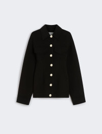 Fitted pea coat made from double pure wool, with deep pleats and details inspired by denim models. Closure with large mirrored metal buttons with engraved logo. - Double pure-wool drap pea coat. - Fitted torso and loose sleeves - Shirt collar - Visible metal button fastening. - Dropped shoulder with yoke both front and back - Fitted Composition and Care Fabric 100% virgin wool; - except joining thread. Do not wash; do not bleach; do not tumble dry; cool iron; professionally dry clean perchloroethylene - mild process; do not wet clean. Distributed by Max Mara S.r.l., registered office in Reggio Emilia (Italy), Via Giulia Maramotti 4, 42124