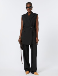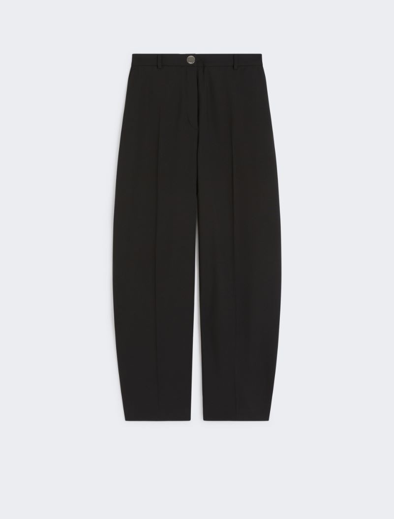 Men’s-style trousers, made of natural stretch wool plain-woven fabric. The construction mixes tailored details with casual touches, such as the press stud and elastic insert on the rear waist. - Straight trousers in natural stretch pure wool canvas. - Straight fit with slightly low waist and wide leg - Snap button closure, elastic insert on the rear of the waist - Slant side pockets and back welt pockets. - Trouser crease only on the front - Regular fit Composition and Care 100% virgin wool. Do not wash; do not bleach; do not tumble dry; cool iron; professionally dry clean perchloroethylene - mild process; do not wet clean.; put this item into a string bag before washing it.; wash the garment while it is fastened.; turn the articles inside out before washing. Distributed by Max Mara S.r.l., registered office in Reggio Emilia (Italy), Via Giulia Maramotti 4, 42124