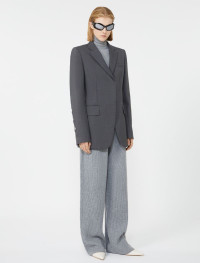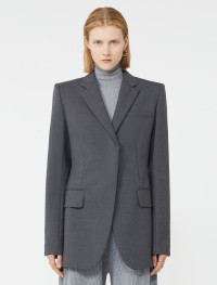 Fitted jacket with darts and cuts that emphasize the silhouette. The garment features side pockets with flap and a breast pocket. Cuffs with slits and customised snap buttons. - Stretch wool canvas jacket - Fitted - Lapel collar - Concealed fastening with buttons - Dropped line at the hem - Lined - Regular fit Composition and Care Fabric 100% virgin wool; lining 70% acetate, 30% polyester; sleeves lining 97% viscose, 3% acetate. Do not wash; do not bleach; do not tumble dry; cool iron; professionally dry clean perchloroethylene - mild process; do not wet clean.; wash the garment while it is fastened. Distributed by Max Mara S.r.l., registered office in Reggio Emilia (Italy), Via Giulia Maramotti 4, 42124