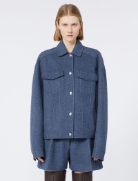 New, feminine jacket with lines inspired by denim styles, with vertical seams, metal buttons and the iconic patch pockets with shaped flap. Wear with the matching shorts. - Jacket in double-sided pure virgin wool - Oversize fit - Shirt collar - Exposed metal buttons - Patch pockets with flap - Regular fit Composition and Care Fabric 100% virgin wool; - except joining thread. Do not wash; do not bleach; do not tumble dry; cool iron; professionally dry clean perchloroethylene - mild process; do not wet clean.; wash the garment while it is fastened.; do not iron the buttons.; turn the articles inside out before washing. Distributed by Max Mara S.r.l., registered office in Reggio Emilia (Italy), Via Giulia Maramotti 4, 42124