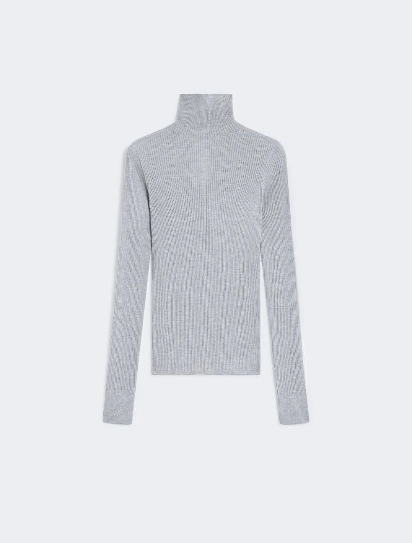 Pure wool turtleneck jumper in a rib knit for a naturally snug fit. With a turn-down polo neck and long sleeves. - Pure virgin wool yarn jumper - Fitted - Polo neck - Hip length - Fitted Composition and Care 100% virgin wool. Hand wash cold (40°c max); do not bleach; do not tumble dry; flat drying in the shade; cool iron; professionally dry clean perchloroethylene - mild process; do not wet clean.; iron with a cloth between.; using neutral detergent. Distributed by Max Mara S.r.l., registered office in Reggio Emilia (Italy), Via Giulia Maramotti 4, 42124