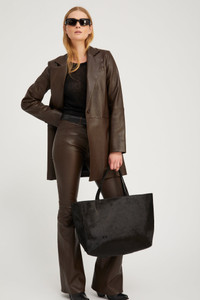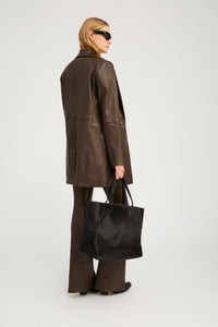 A classic statement maker, our Brigitte Blazer's relaxed, yet structured shape exudes a sense of ease and sophistication. Made from our buttery-soft French plonge leather, this piece will feel like a second-skin due to its extreme breathability – a property exclusive to SPRWMN – making it wearable all year round. Tailored in a single breasted silhouette, this blazer is extremely versatile and pairs well with everything from leather to denim. COLOR: Americano FIT & MEASUREMENTS - Fits true to size; relaxed fit - Emma is 5'10" & wears size Small PRODUCT DETAILS - 100% French Lambskin - Stretch Leather - Cotton-Lycra lining - Eco friendly, hypoallergenic and chrome-free vegetal dyed - Single front button closure - Leather specialist clean only