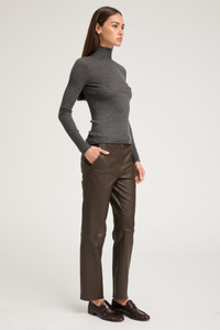 A luxurious take on a classic cigarette pant, made in our signature stretch-leather for an effortlessly chic and wearable look. Featuring five functional pockets, belt loops and an ultra-sleek fit, these pants strike the perfect balance of modern and edgy. With a wide range of styling options, these pair well with heeled boots or sneakers, a cashmere sweater or a leather top. COLOR: Americano FIT & MEASUREMENTS - Fits true to size - Our lambskin gives naturally over time; if in-between sizes, size down - Anna is 5'11 & wears size Small PRODUCT DETAILS - 100% French Lambskin - Stretch Leather - Cotton-Lycra lining - Eco friendly, hypoallergenic and chrome-free vegetal dyed - Zipper, hook & eye closure - 5 functional pockets - Leather specialist clean only