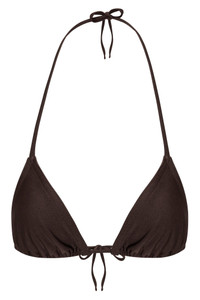 SPRWMN's classic triangle bikini top, designed from our body-sculpting matte swim fabric for an ultra-flattering look and feel. Fully lined for just the right amount of coverage, this is the bikini you'll be reaching for all summer. Pair with the tie bikini bottom for the perfect set. COLOR: Americano Brown FIT & MEASUREMENTS - Fits true to size PRODUCT DETAILS - 80% Nylon, 20% Elastane - Double lined with self fabric - Fixed shoulder straps that can be tied at the neck - Back strap ties - Hand wash cold, hang dry