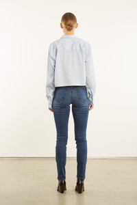 With a tasteful take on classic workwear, this timeless blue button down is made from abreathable Poplin Cotton, making it the perfect layering staple for all seasons. Designed tofall belowthe natural waist, thissilhouetteperfectlymeets allhigh waisted bottoms for a clean look - without the hassle of a tuck.With virtually endless styling options, this toppairs wellwith everything from denim to trousers. COLOR:Baby Blue FIT & MEASUREMENTS - Fit true to size - Model wears size Small PRODUCT DETAILS - 100% Poplin Cotton - Machine wash cold, tumble dry no heat