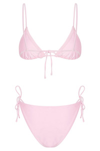 SPRWMN's classic triangle bikini top, designed from our body-sculpting matte swim fabric for an ultra-flattering look and feel. Fully lined for just the right amount of coverage, this is the bikini you'll be reaching for all summer. Pair with the tie bikini bottom for the perfect set. COLOR: Ballet Pink FIT & MEASUREMENTS - Fits true to size PRODUCT DETAILS - 80% Nylon, 20% Elastane - Double lined with self fabric - Fixed shoulder straps that can be tied at the neck - Back strap ties - Hand wash cold, hang dry