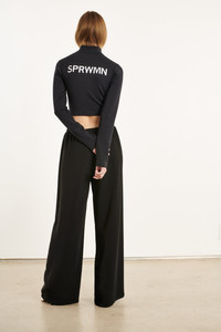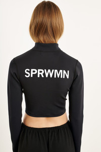 Designed in our body-sculpting sport fabric, meet ourclassic rashguard featuring our iconic logo printed across the back. Staycomfortablein sea surface temperatures with this long-sleeve, mock-neck shape. Withno need for lining, thisstretchy and smoothing materialis made to mold to your body, featuring maximum resiliency so it won't lose its shape after repeat wear.Featuring aslightcrop this pairs perfectly with our matching bikini briefsfor a complete look that will keep you chic in and out of the water. COLOR: Black FIT & MEASUREMENTS - Fit true to size - Model wears size Small PRODUCT DETAILS - 78% Polyester 22% Elastane - Machine wash, cold - Unlined - Classic white logo on back