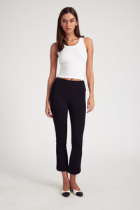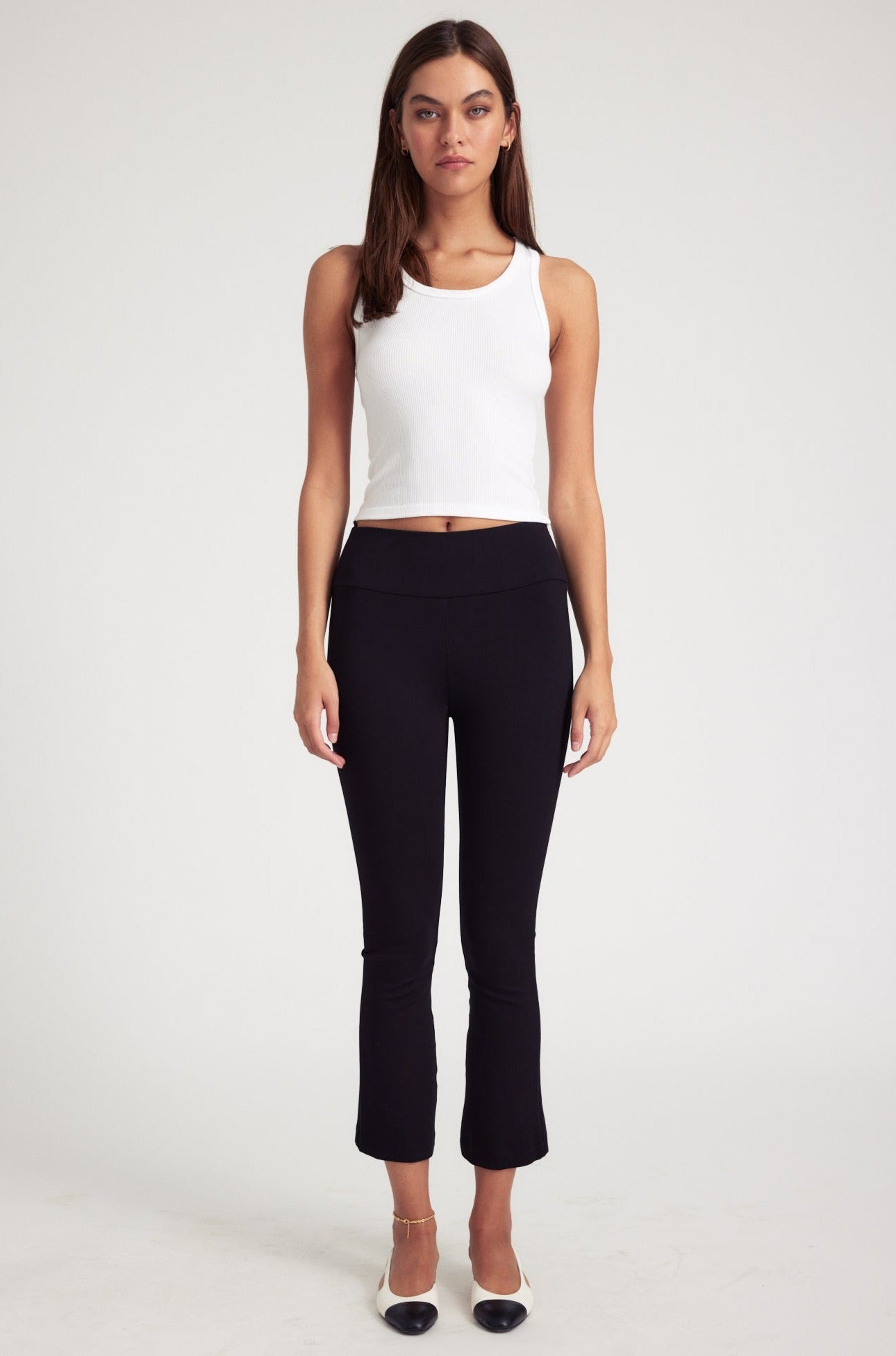 Not your regular leggings, ourclassic slimmingcrop flare silhouette thatis known for comfortable yet ultra-flattering fit,nowmade for even more versatility in your wardrobe. Made in our tech-stretch spandex inspired Casanova fabric for a snug feel that retains it's shapeafter all-day wear. Wear these casually with a tucked in sweater, or more dressed up with a tube top and heels. COLOR: Black FIT & MEASUREMENTS - Fit true to size - High-rise, slim fit - 25" inseam, 8" leg opening - Model wears size Small PRODUCT DETAILS - 67% Rayon 28% Nylon 5% Spandex - Machine wash cold, Tumble dry low