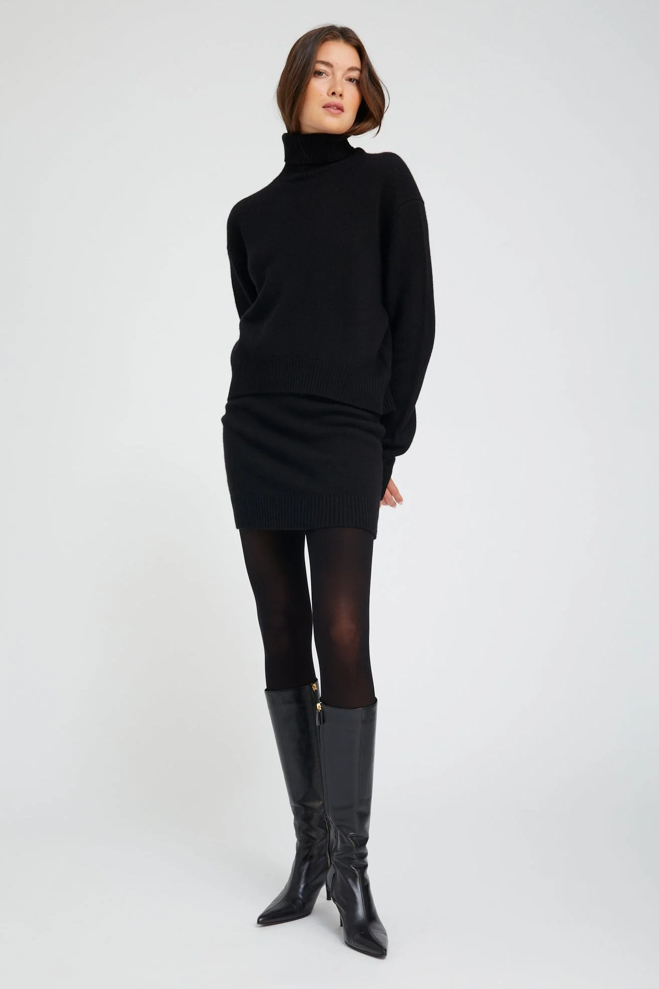 The Mia skirt - made from our high-quality, ultra soft Mongolian Cashmere. Designed with a ribbed waistband and hemline for added subtle texture, while the stretch-knit construction moves effortlessly with you. Pair it with the Mia cardigan for the perfect set. COLOR: Black FIT & MEASUREMENTS - Fits true to size - Mini length - Kennedy is 5'11" & wears size Small PRODUCT DETAILS - 100% Cashmere - Sustainably grown, organic yarn - Pull-on style - Ribbed waistband and hem - Dry clean only