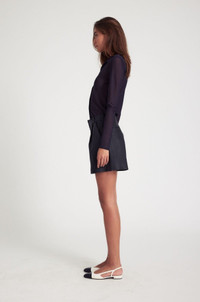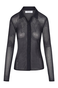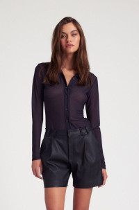 Our take on the essential collared button down, now in a slightly sheer, breathable mesh fabric. Designed to have a slightly more slimming and versatile fit, wear with your favorite trousers or jeans for a chic, elevated look. COLOR: Black FIT & MEASUREMENTS - Fits true to size - Kiana is 5'11 & wears size Small PRODUCT DETAILS - 82% Viscose, 18% Polyamide - Machine wash delicate, lay flat to dry