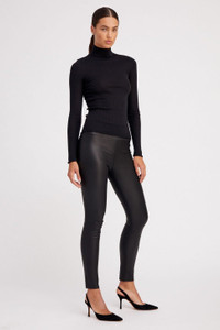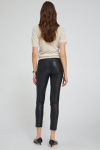 Our classic Ankle Leggings, made in our signature stretchy French plonge leather, feel like a second-skin due to their extreme breathability – a property exclusive to SPRWMN – are a wardrobe essential that can be worn every single season. These pants also feature our signature Japanese elastic waistband for a figure-sculpting fit. Style them casually with slides and a tee, or dress them up with heels and a leather tube top. COLOR: Black FIT & MEASUREMENTS - Fits true to size - Black leather naturally stretches 1/4-1/2 size. To maintain a fitted look, or if in-between sizes, we recommend sizing down. Meant to fit tight at first-try - High-rise, skinny fit - 28.5" inseam - First model is 5'11 & wears size Small PRODUCT DETAILS - 100% French Lambskin - Stretch Leather - Cotton-Lycra lining - Elastic waistband, pull-on fit - Eco friendly, hypoallergenic and chrome-free vegetal dyed - Leather specialist clean only