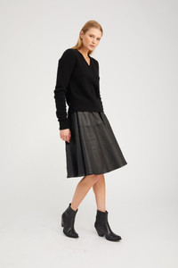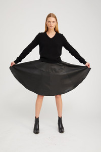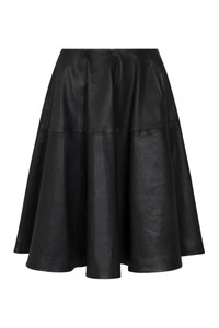 The Bardot skirt, crafted from our ultrasoft, Plonge leather, is a timeless essential that easily transitions transitions from day to night. This skirt features paneled seams and a gentle flare that moves effortlessly with the body. The mid-length cut flatters all silhouettes while maintaining a chic and feminine shape. COLOR: Black FIT & MEASUREMENTS - Fits true to size - Meant to fit tight at first-try – leather naturally gives; if in between sizes, size down - Emma is 5'10" & wears size Small PRODUCT DETAILS - 100% French Lambskin - Stretch Leather - Cotton-Lycra lining - Eco friendly, hypoallergenic and chrome-free vegetal dyed - Paneled A-line silhouette - Invisible back zipper closure - Leather specialist clean only