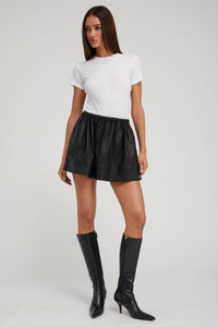 BLACK LEATHER BELL MINI SKIRT