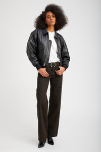 Our cropped bomber is made from ultra-soft, durable Agneau Plonge leather for a classic structured look. Featuring two front patch pockets, ribbed trim at the cuffs and hem and lined in smooth silk. This jacket hits just below the natural waistline, making it perfect to pair with any bottom or dress. COLOR: Black FIT & MEASUREMENTS - Fits true to size - Cropped fit - Lauren wears size Small PRODUCT DETAILS - 100% French Lambskin - Silk lined - 2 patch pockets - Ribbed hem and cuffs - Silver zip closure - Leather specialist clean only