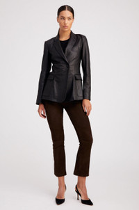 A classic, yet subtle statement maker, made from our ultra soft plonge leather, our fitted leather blazer exudes ease and sophistication. Tailored in a fitted single-breasted silhouette, this blazer is extremely versatile and pairs well with anything from leather leggings to your favorite SPRWMN trousers. COLOR: Black