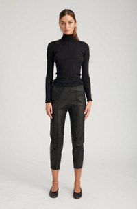 A luxurious take on a classic jogger, made in our signature stretch-leather are effortlessly chic and easy to wear. Designed for a relaxed fit with a comfortable elastic-stretch waistband and a raw hem. These pants are tailored with pintucks down the front and back to lengthen your legs. Wear these casually with sneakers and a tee, or take them out with a pair of heels. COLOR:Black FIT & MEASUREMENTS - Fits true to size - Our lambskin gives naturally over time; if in-between sizes, size down - 25.5" inseam, 11" rise - Kiana is 5'11 & wears size Small PRODUCT DETAILS - 100% French Lambskin - Stretch Leather - Cotton-Lycra lining - Elastic waistband, pull-on fit - Eco friendly, hypoallergenic and chrome-free vegetal dyed - 2 functional side pockets - Leather specialist clean only