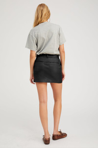 Edge meets elegance in our mini trouser skirt. Made in our signature buttery-soft French stretch-leather, this skirt combines the tailored look of our classic trousers with the feminine ease and wearability of a skirt. COLOR: Black FIT & MEASUREMENTS - Fits true to size - 15" length - Our lambskin gives naturally over time; if in-between sizes, size down - Emma is 5'10 & wears size Small PRODUCT DETAILS - 100% French Lambskin - Stretch Leather - Cotton-Lycra lining - Eco friendly, hypoallergenic and chrome-free vegetal dyed - Zip fly with hook and bar closure - Belt loops, 4 pockets - Leather specialist clean only
