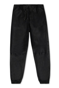 Our take on a pair of classic drawstring sweatpants, made entirely in our signature lambskin leather. Thoughtfully lined in a Lycra-cotton that allows for breathability and year-round wear, this is a fit that can adapt easily to any body type. A versatile pull-through drawstring offers a more laid back look with an adjustable waist that feels versatile yet luxe. With a wide range for styling, dress these up or make them an everyday staple with sneakers and a boyfriend sweater or tee. COLOR: Black FIT & MEASUREMENTS - Fits true to size - Our lambskin gives naturally over time; if in-between sizes, size down - 25" inseam, 11.5" rise, 6" leg opening - Anna is 5'11 & wears size Small PRODUCT DETAILS - 100% French Lambskin - Stretch Leather - Cotton-Lycra lining - Eco friendly, hypoallergenic and chrome-free vegetal dyed - Adjustable drawstring waistband, pull-on fit, elastic cuffs - 2 functional pockets - Leather specialist clean only