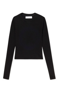 Made in our signature, soft ribbed fabric with resilient stretch, this naturally slimming cropped long sleeve tee maintains its shape making it an everlasting wardrobe essential. Designed with a slight crop to hit right above the natural waistline, this top is perfect for pairing with your favorite jeans or high-waisted trousers. COLOR:Black FIT & MEASUREMENTS - Fits true to size - Designed for a slightly snug fit - Cropped fit - Kiana is 5'11 & wears size Small PRODUCT DETAILS - 98% Tencel, 2% Spandex - Small vertical ridges for a slimming effect - Crewneck - Machine wash cold, tumble dry low