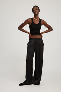 Made in our signature, soft ribbed fabric with resilient stretch, this naturally slimming scooped tank maintains its shape making it an everlasting wardrobe essential. Cut with a classic scoop neckline with thick straps and a racer back, it's fitted silhouette makes it versatile for day to night wear. COLOR: Black FIT & MEASUREMENTS - Fits true to size - Designed for a slightly snug fit PRODUCT DETAILS - 98% Tencel, 2% Spandex - Small vertical ridges for a slimming effect - Machine wash cold, tumble dry low