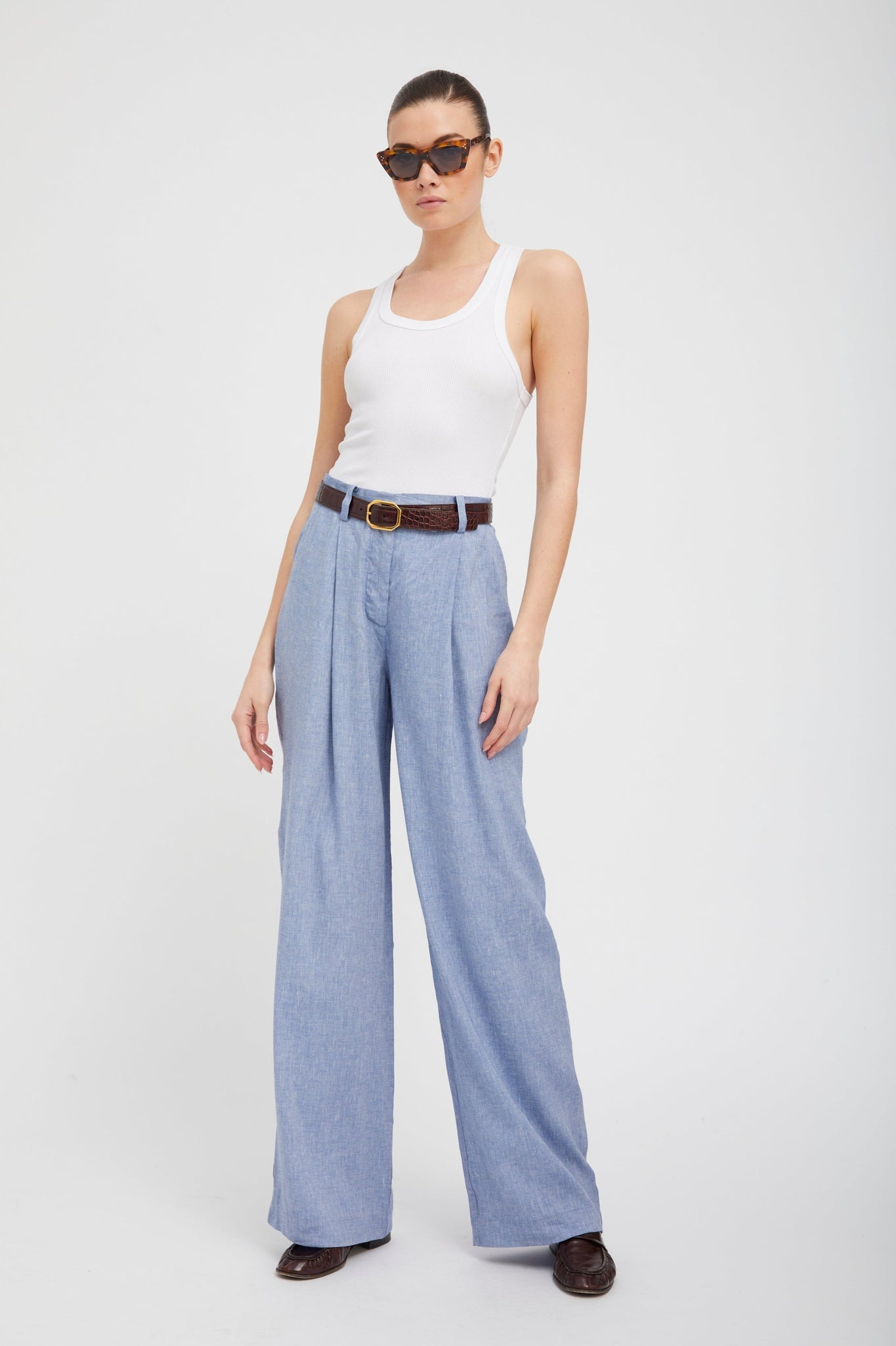 BLUE LINEN PALOMA PLEATED TROUSERS