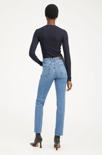 Meet Charlotte, the ultimate skinny-straight jeans made from stretch denim that moves with you without losing its shape. Featuring our signature back V and chic faux-croc embossed label, these pants will quickly become your favorite pair of jeans.Designed to sit high on the hips, these jeans feature a flattering skinny fit that pairs perfectly with ankle boots and sneakers alike. WASH: Charlotte - Medium Blue with Fading FIT & MEASUREMENTS - Fits true to size - High rise, skinny fit - 30.5" inseam, 11.5" rise, 9" leg opening - Adama is 5'11 & wears size 26 PRODUCT DETAILS - 98% Cotton, 2% Elastane - Stretch Denim - Italian Denim - Machine wash cold, tumble dry low - Front zipper & button closure