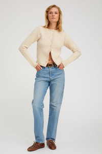 This multicolored, chunky, knit cardigan is knitted from our high-quality, ultrasoft Mongolian Cashmere. With a slightly relaxed fit that hits at the natural waist, this is the perfect cozy piece to elevate any look. Wear with your favorite SPRWMN denim or leather trousers for a chic outfit that can easily be worn from day to night. COLOR: Creamy Beige FIT & MEASUREMENTS - Fits true to size - Emma is 5'10 & wears size Small PRODUCT DETAILS - 100% Cashmere - Sustainably grown, organic yarn - Dry clean only