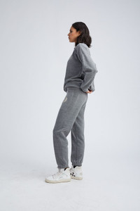Back by popular demand is our signature heart joggers; an easy pull-on style, subtly printed with our heart logo. Renownedfor their extremely soft, yet lightweight fabric, these sweatpantshost a cozyand effortless feel.For the perfect outfit, complete the look with a matching sweatshirt. COLOR:Dark Heather Grey, Metallic Silver Heart FIT & MEASUREMENTS - Fits true to size - 29" inseam, 13" rise, 9" leg opening - Model wears a size small PRODUCT DETAILS - 50% Polyester, 38% Cotton, 12% Rayon - Machine wash cold, tumble dry low