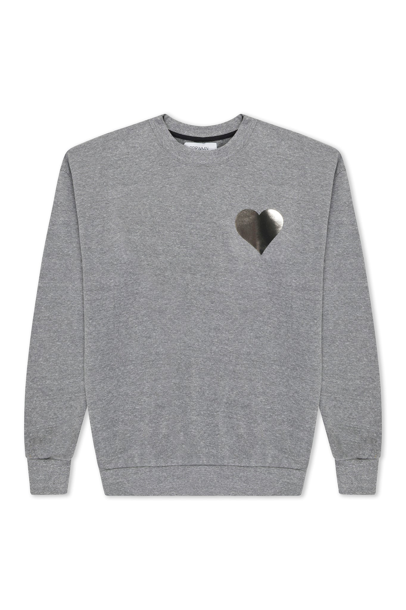 SPRWMN's heart logo sweatshirt is made from our signature cotton-fleece blend, renowned for its luxuriously-soft, yet lightweight feel. Subtly printed with our iconic heart logo, this crewneck is designed for a relaxed fit creating the perfect balance between casual and chic. Complete the look with our signature heart sweatpants. COLOR: Dark Grey, Silver Heart FIT & MEASUREMENTS - Fits true to size PRODUCT DETAILS - 50% Polyester, 38% Cotton, 12% Rayon - Heart logo - For first wash, machine wash cold by itself - Machine wash cold, hang to dry