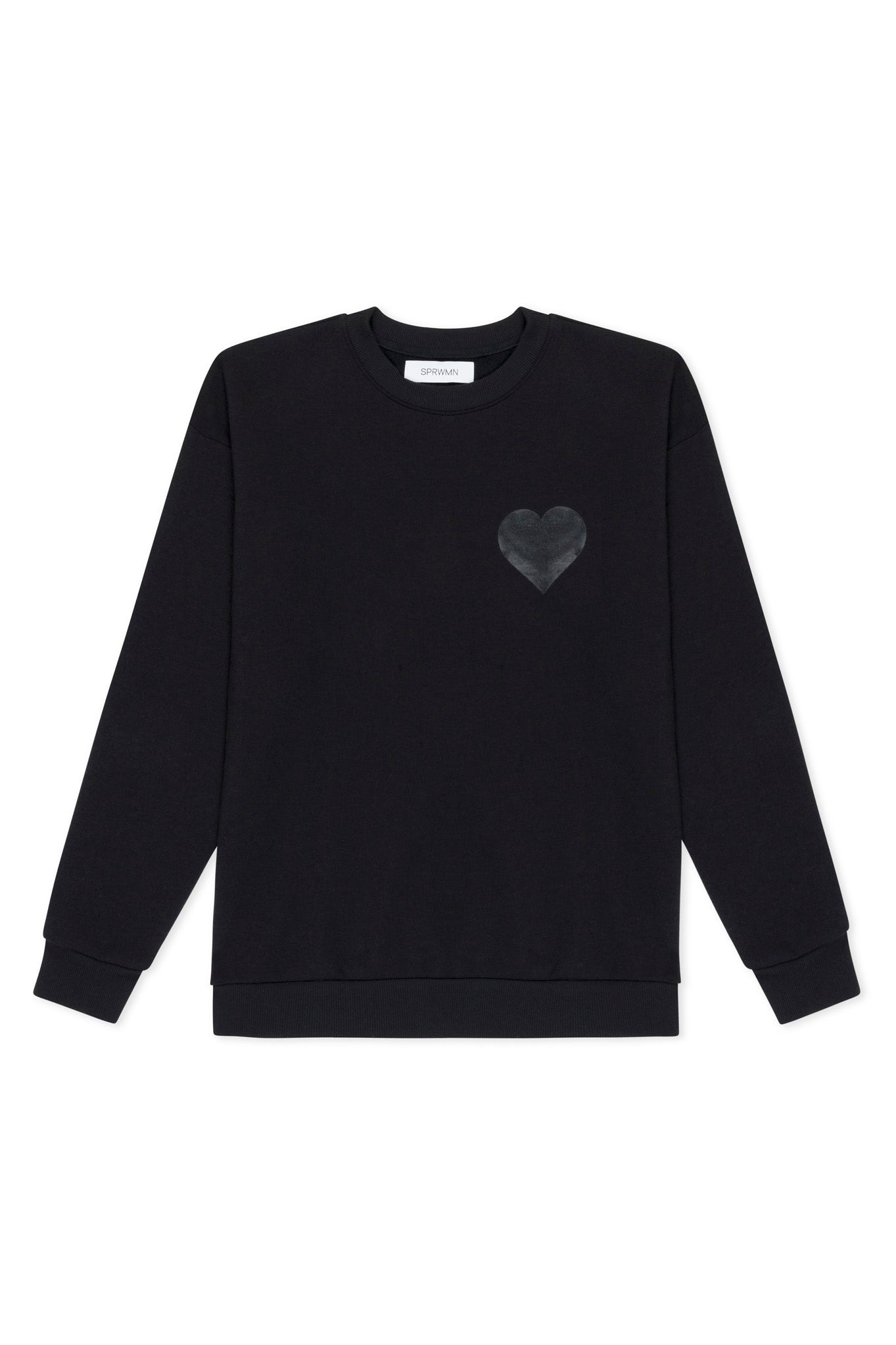 SPRWMN's heart logo sweatshirt is made from our signature cotton-fleece blend, renowned for its luxuriously-soft, yet lightweight feel. Subtly printed with our iconic heart logo, this crewneck is designed for a relaxed fit creating the perfect balance between casual and chic. Complete the look with our signature heart sweatpants. COLOR: Black, Glossy Black Heart FIT & MEASUREMENTS - Fits true to size PRODUCT DETAILS - 50% Polyester, 38% Cotton, 12% Rayon - Heart logo - For first wash, machine wash cold by itself - Machine wash cold, tumble dry low - * Due to the soft nature of the fabric, slight pilling may occur