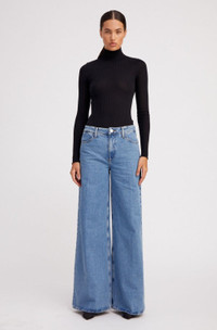 Our Wide Leg denim jeans are designed to sit relaxed at the waist, hips and thighs for an effortlessly chic yet laid-back look. This mid-rise fit combined with oversized leg openings offer a sophisticated drape and silhouette that elongates the legs and is naturally slimming. Featuring our signature back V and faux-croc embossed label and made from 100% Cotton for a classic denim look and feel. Wear these with a cropped tank or leather tube top, or for a more casual look, with an oversized cashmere sweater. WASH:Grace - Classic Vintage Blue FIT & MEASUREMENTS - Fits true to size - 35" inseam, 10.5" rise, 29" leg opening - Anna is 5'11 & wears size 25 PRODUCT DETAILS - 100% Cotton - Non-Stretch Denim - Japanese Denim - Machine wash cold, tumble dry low - Mid-rise. Relaxed fit at the waist, hips, and thighs - Wide leg silhouette - Front zipper & button closure