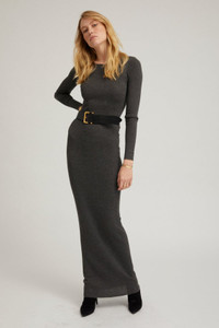 GREY CASHMERE CREWNECK MAXI DRESS