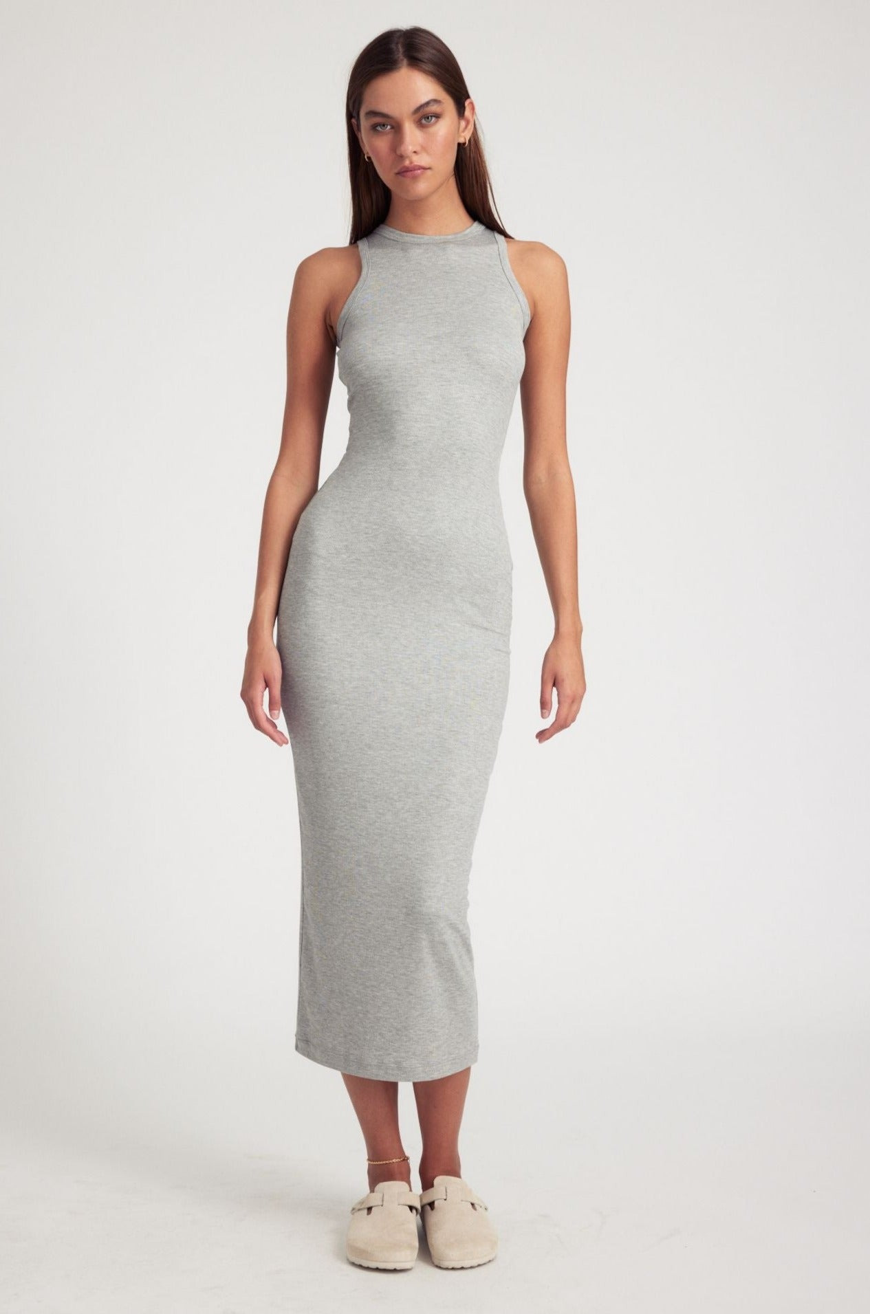 HEATHER GREY RIB RACER MAXI DRESS