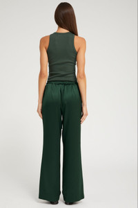 Made from lightweight and luxurious silk, our Kauai pantswill keep you feeling cool and airy on any occasion. Featuring a comfortable, loose fit with a stretchy drawstring waistband for effortless pull-on wear. Pair with a classic knit tank or cashmere sweater for the perfect look. COLOR: Ivy FIT & MEASUREMENTS - Fits true to size - Anna is 5'11 & wears size Small PRODUCT DETAILS - 100% Silk - Drawstring waistband, pull-on fit - Side slit pockets - Dry clean only