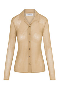 Our take on the essential collared button down, now in a slightly sheer, breathable mesh fabric. Designed to have a slightly more slimming and versatile fit, wear with your favorite trousers or jeans for a chic, elevated look. COLOR: Khaki FIT & MEASUREMENTS - Fits true to size - Kiana is 5'11 & wears size Small PRODUCT DETAILS - 82% Viscose, 18% Polyamide - Machine wash delicate, lay flat to dry