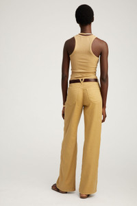 KHAKI LINEN 5 POCKET WIDE LEG PANTS
