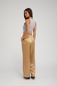 Made from lightweight and luxurious silk, our Kauai pants will keep you feeling cool and airy on any occasion. Featuring a comfortable, loose fit with a stretchy drawstring waistband for effortless pull-on wear. Pair with a classic knit tank or cashmere sweater for the perfect look. COLOR: Khaki FIT & MEASUREMENTS - F PRODUCT DETAILS - 100% Silk - Drawstring waistband, pull-on fit - Side slit pockets - Dry clean only