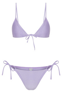 SPRWMN's classic triangle bikini top, designed from our body-sculpting matte swim fabric for an ultra-flattering look and feel. Fully lined for just the right amount of coverage, this is the bikini you'll be reaching for all summer. Pair with the tie bikini bottom for the perfect set. COLOR: Lavender FIT & MEASUREMENTS - Fits true to size PRODUCT DETAILS - 80% Nylon, 20% Elastane - Double lined with self fabric - Fixed shoulder straps that can be tied at the neck - Back strap ties - Hand wash cold, hang dry