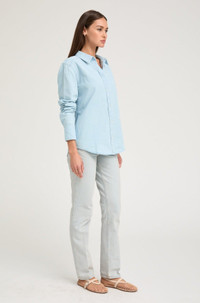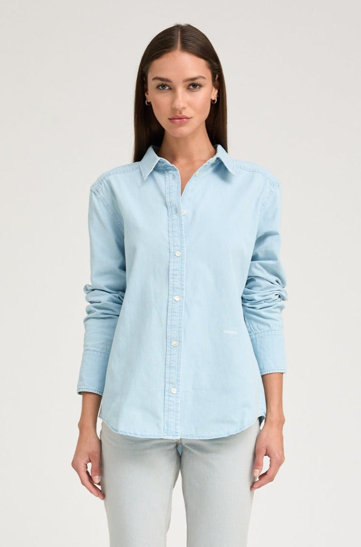 Our take on the essential collared button down shirt, made from breathable cotton and designed to feel soft while maintaining a crisp structure with feminine drape. Made to have a slightly more oversized fit for a classic staple. Wear with your favorite jeans or tucked into leather trousers. COLOR: Charlie - Light Blue Chambray FIT & MEASUREMENTS - Fits true to size - Kiana is 5'11 & wears size Small PRODUCT DETAILS - 100% Cotton - Signature SPRWMN embroidered logo - Machine wash cold, tumble dry low