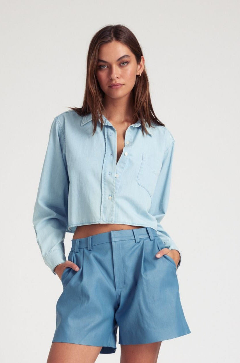 LIGHT BLUE CHAMBRAY CROPPED BUTTON DOWN