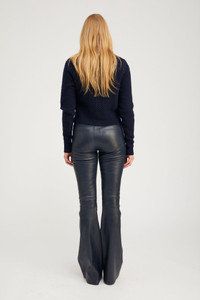 This luxe, cable knit cashmere cardigan is knitted from our high quality, ultra-soft Mongolian yarn. Featuring a classic button-down front with a subtle chevron-inspired cable knit pattern that brings texture and sophistication. The slightly cropped silhouette and ribbed edges make it a versatile layering piece — equally chic worn buttoned up as a top or open over a sleek base layer. COLOR: Navy FIT & MEASUREMENTS - Fits true to size - Cropped, tailored fit - Emma is 5'10" & wears size Small PRODUCT DETAILS - 100% Cashmere - Sustainably grown, organic yarn - Ribbed cuffs and hem - Button-front closure with tonal buttons - Cable knit with chevron-inspired texture - Dry clean only