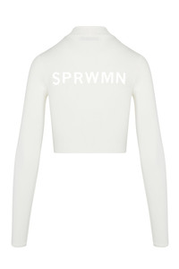 Designed in our body-sculpting sport fabric, meet ourclassic rashguard featuring our iconic logo printed across the back. Staycomfortable in sea surface temperatures with this long-sleeve, mock-neck shape. Withno need for lining, thisstretchy and smoothing materialis made to mold to your body, featuring maximum resiliency so it won't lose its shape after repeat wear.Featuring aslightcrop this pairs perfectly with our matching bikini briefsfor a complete look that will keep you chic in and out of the water. COLOR:Off White FIT & MEASUREMENTS - Fit true to size - Model wears size Small PRODUCT DETAILS - 78% Polyester 22% Elastane - Machine wash, cold - Unlined - Classic white logo on back
